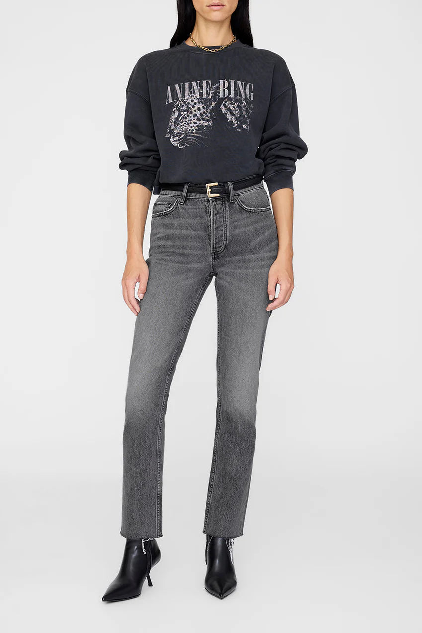 The Spencer Sweatshirt Spotted Leopard is made from midweight 100% organic cotton French terry in washed black.