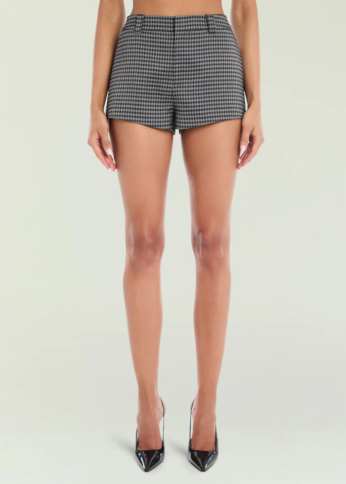 Houndstooth print hot short. Pair with the Tatiana Vest to complete the look. Shown here in Charcoal Houndstooth.