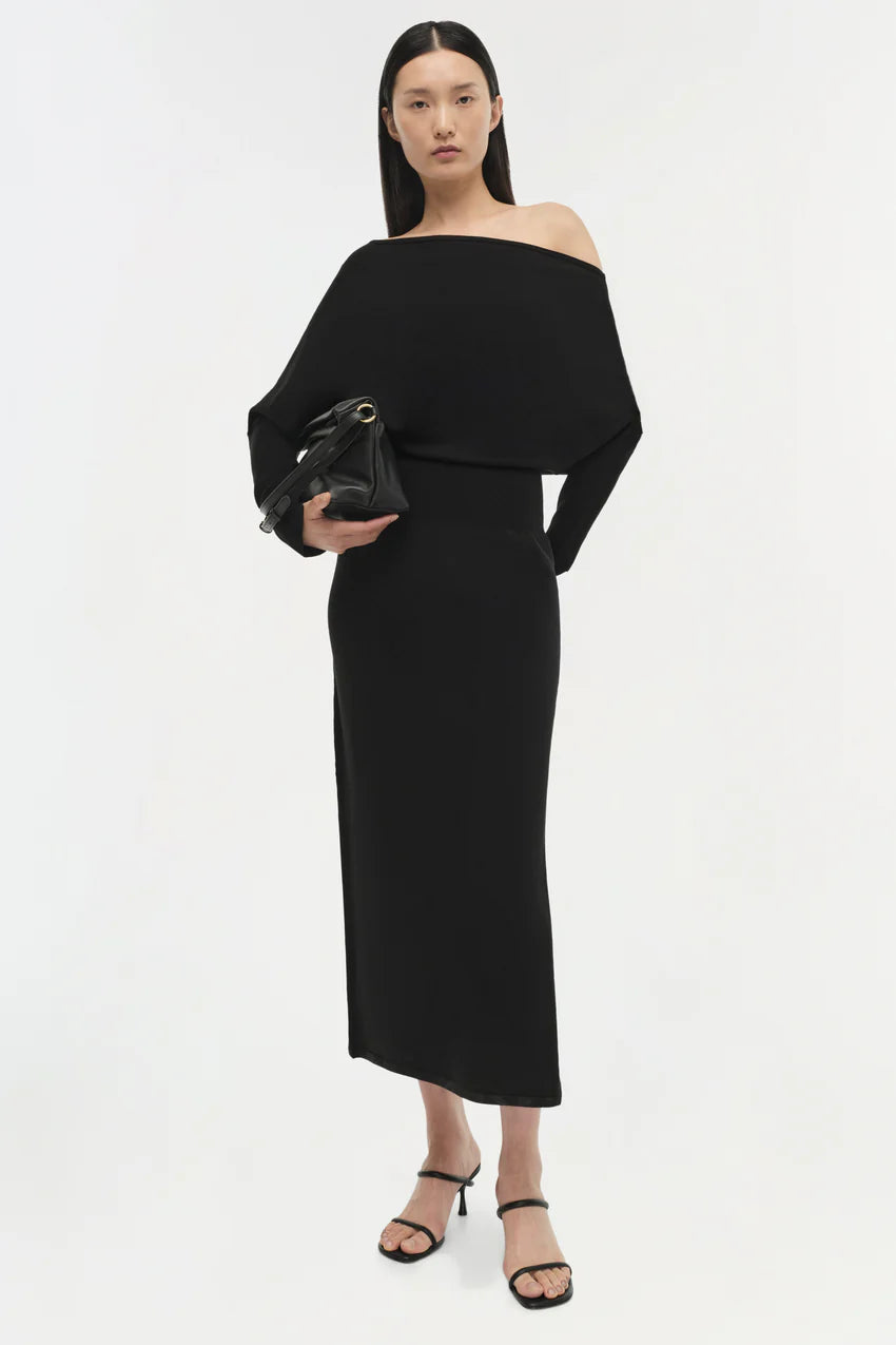 The Janese Off Shoulder Midi Dress in Black
