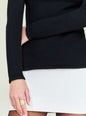 High neck, long sleeve dress with knit bodice and crepe mini skirt. Shown here in Black/Eggshell.