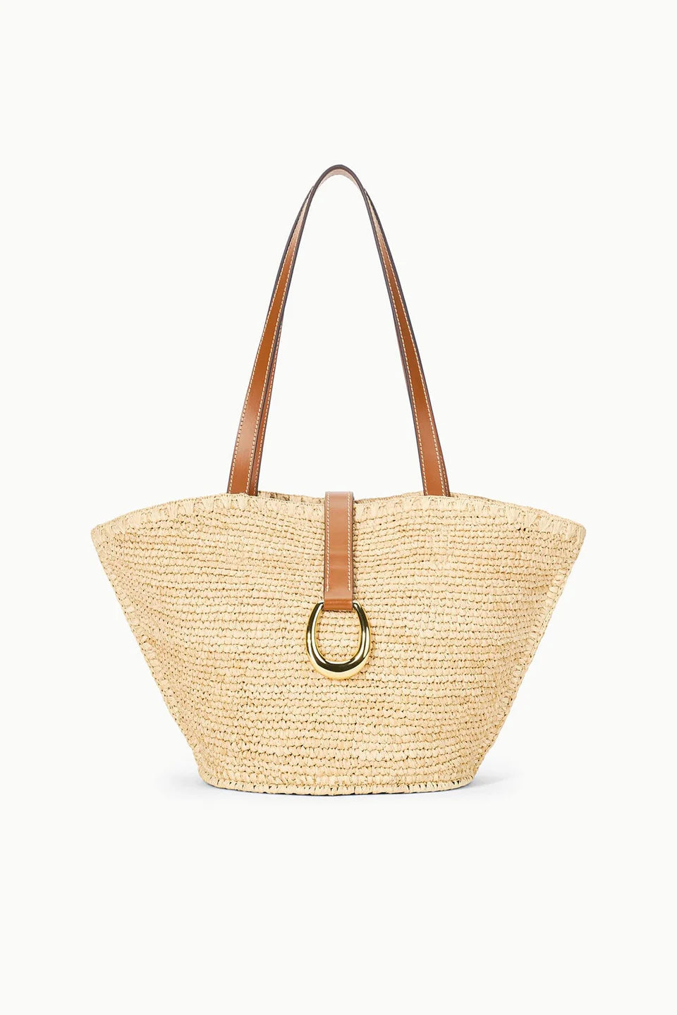 The Vista Tote is an easy summer tote crafted in our natural raffia, featuring our signature moon hardware closure.