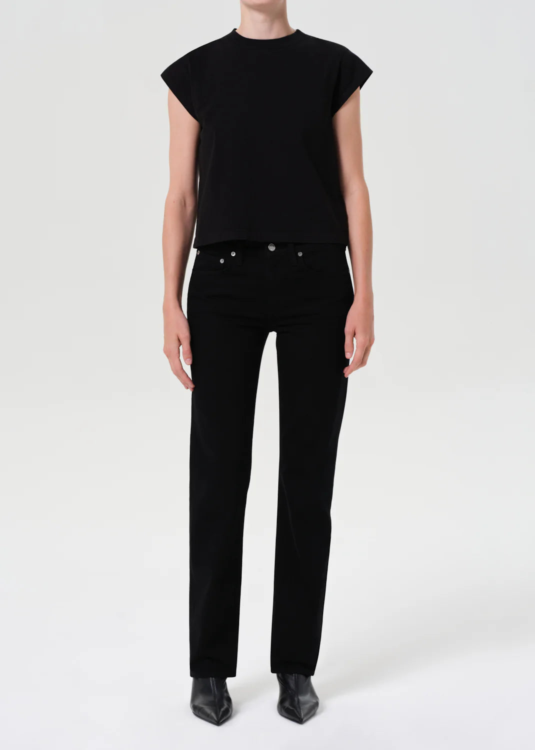 The Low Rise Slim is designed with a sleek, close-to-the-body fit that sits low on the waist for a sharp, modern silhouette. Crafted from weightless stretch regenerative cotton denim, it offers subtle flexibility with a naturally soft, ultra-light feel that moves with you throughout the day. Finished in a clean, saturated black wash, it serves as an endlessly versatile staple.