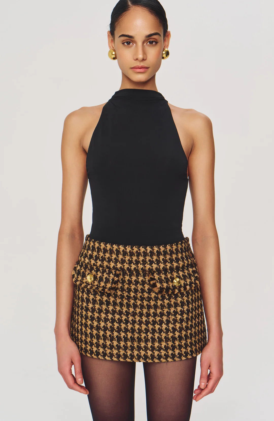 Simplicity meets seduction. The Spen Bodysuit features a high halter neckline, designed for a smooth, body-hugging fit. It’s the essential base layer for power suiting or a sleek night-out look.