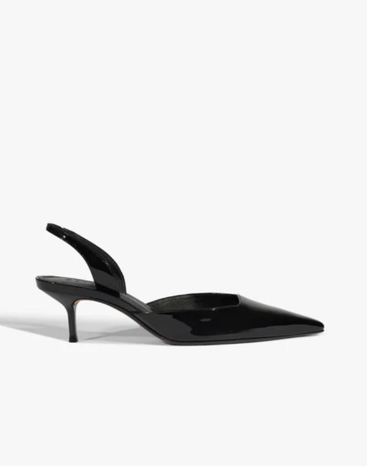 The Paola mid-pump mixes a vintage attitude with a modern edge. A bold cutout and fierce pointed-toe redefine what a classic slingback can do. The mid-heel is subtle, but the look is anything but basic. Rock it with cropped jeans, a button-down, or something unexpected. Either way, this pair leads the conversation.